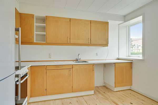 Der er terrasse/have til lejlighederne i stuen og depotrum og parkeringsplads til hver lejlighed.